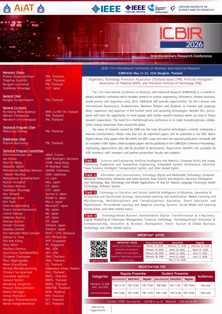 ICBIR2026 : May 21-22, 2026 at E Building, Thai-Nichi Institute of Technology, Bangkok, Thailand